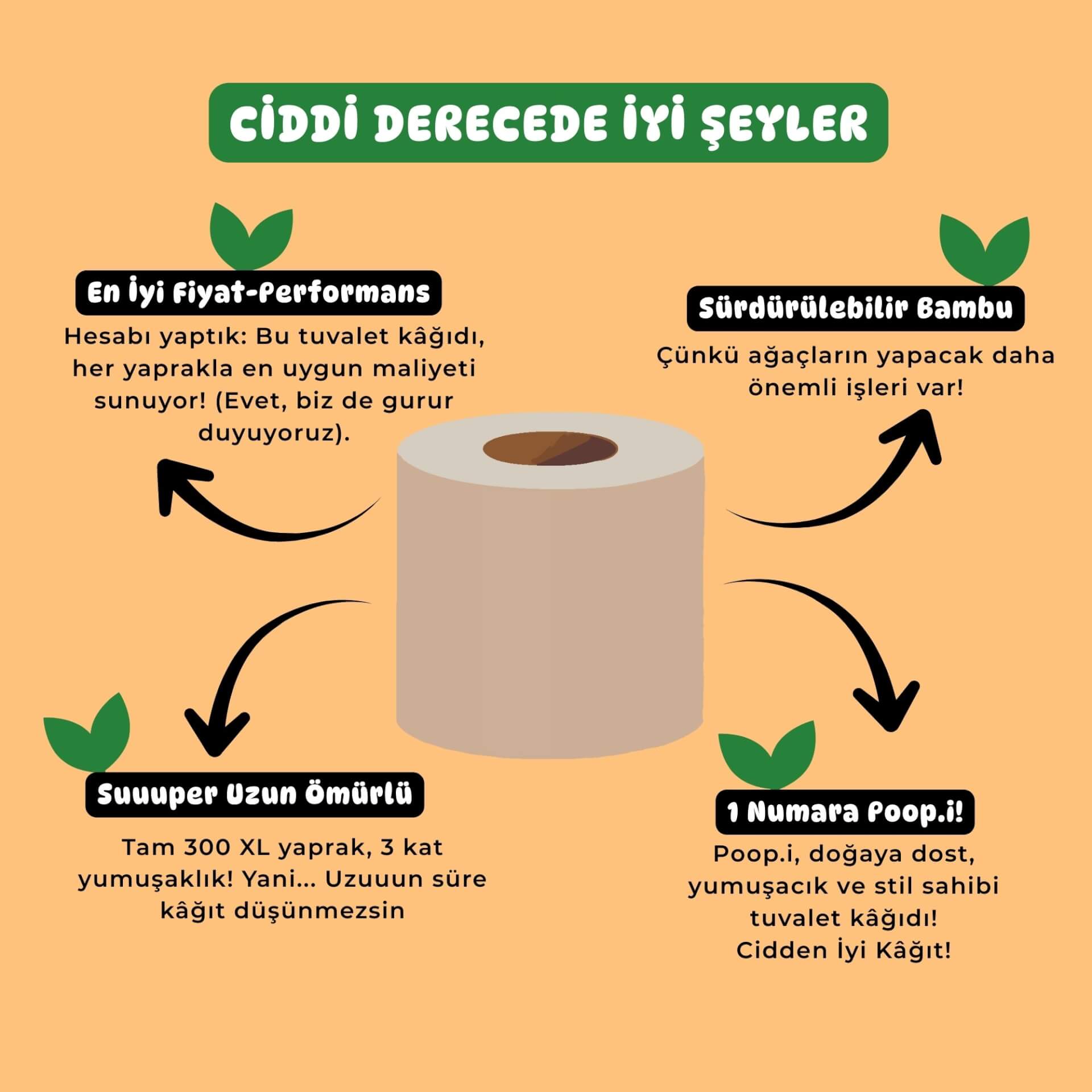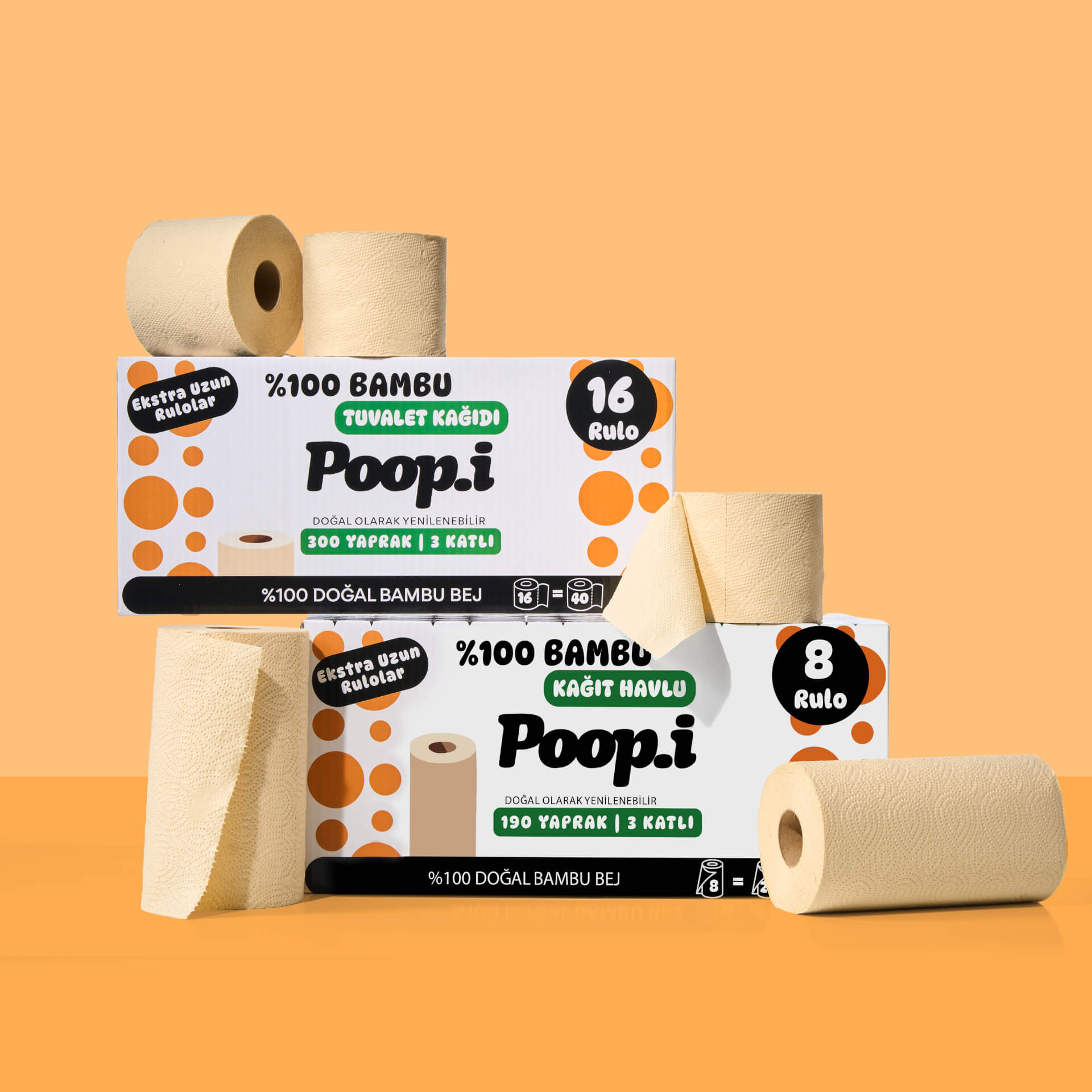 Hızla büyüyen, kendini yenileyebilen bambudan üretilen tuvalet kâğıtları uzun, dayanıklı ve ipeksi yumuşak. Aynı bambu liflerinden üretilen kağıt havlular ise yüksek emicilik ve güç sunar — tek yaprak çoğu zaman yeter.