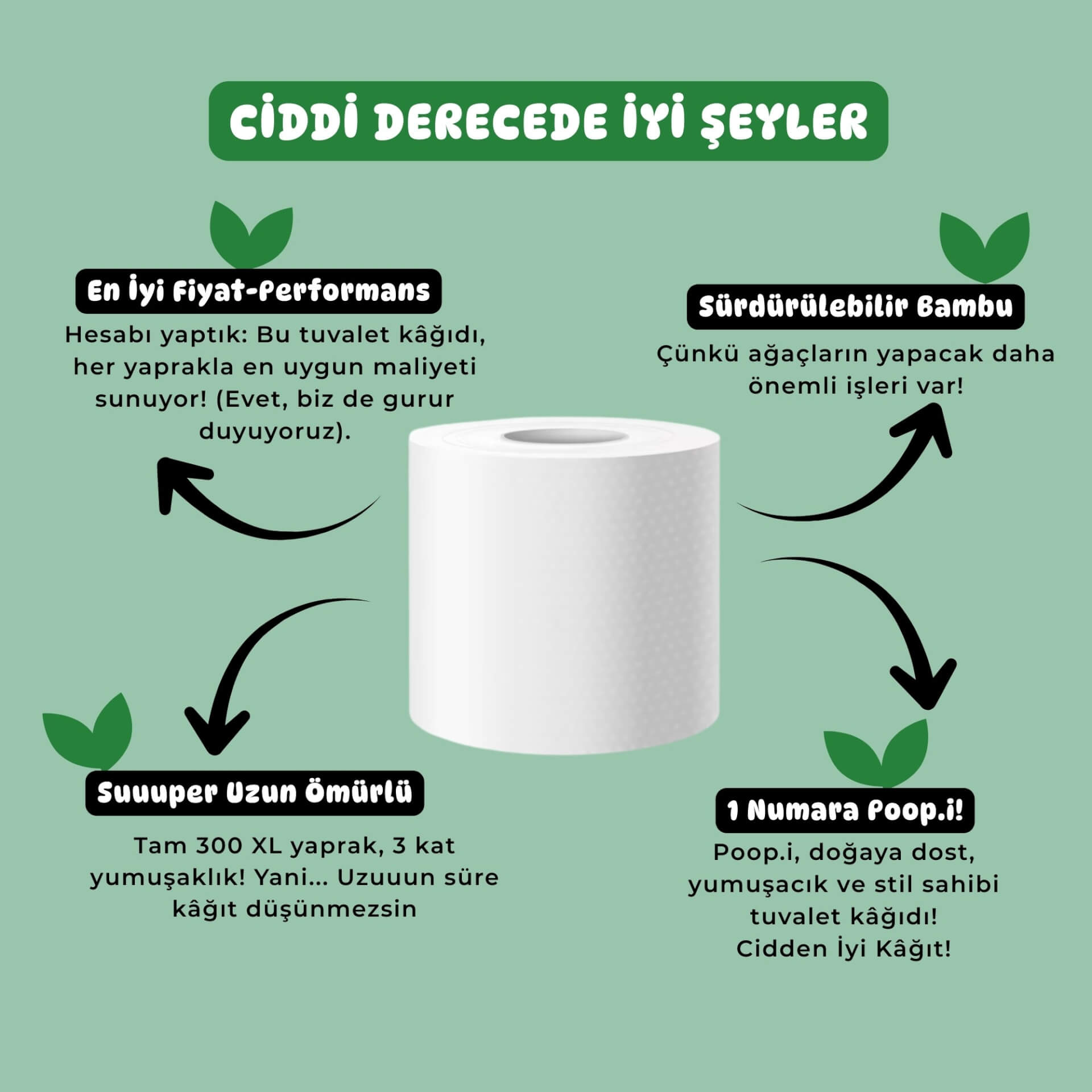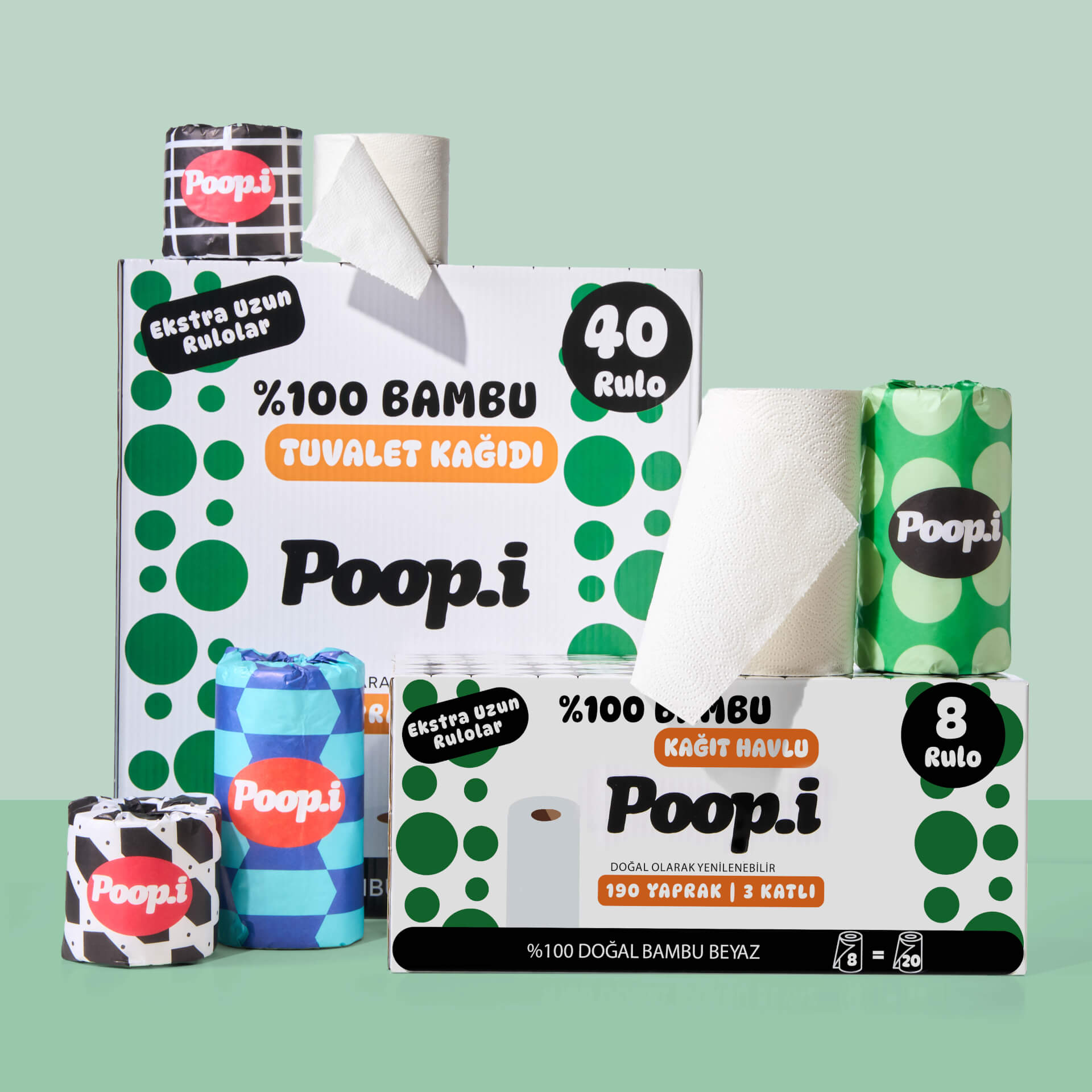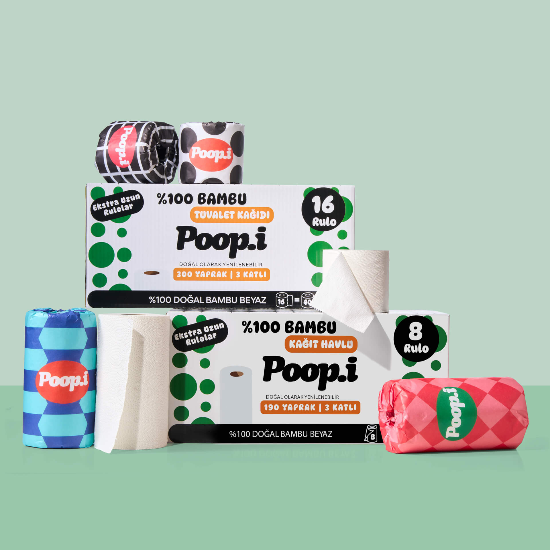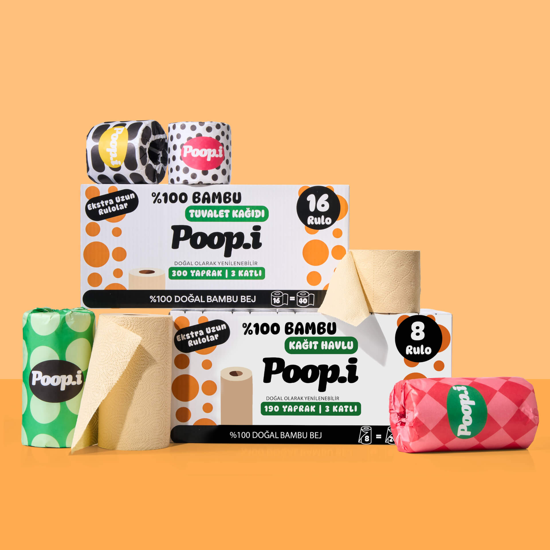 Hızla büyüyen, kendini yenileyebilen bambudan üretilen tuvalet kâğıtları uzun, dayanıklı ve ipeksi yumuşak. Aynı bambu liflerinden üretilen kağıt havlular ise yüksek emicilik ve güç sunar — tek yaprak çoğu zaman yeter.