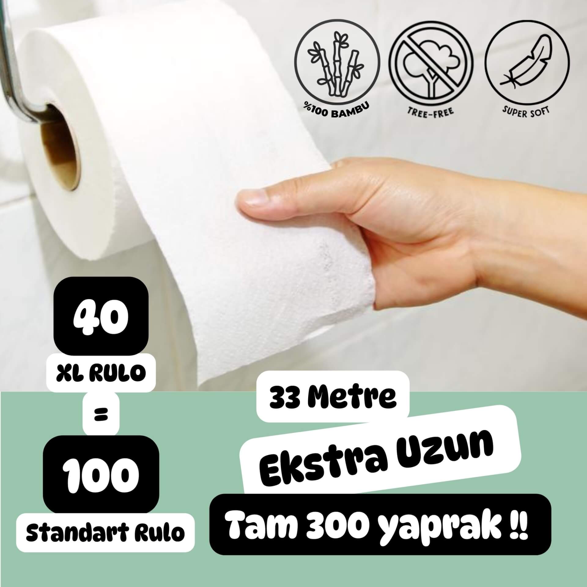 - 3 katlı, ekstra uzun %100 bambu tuvalet kâğıdı