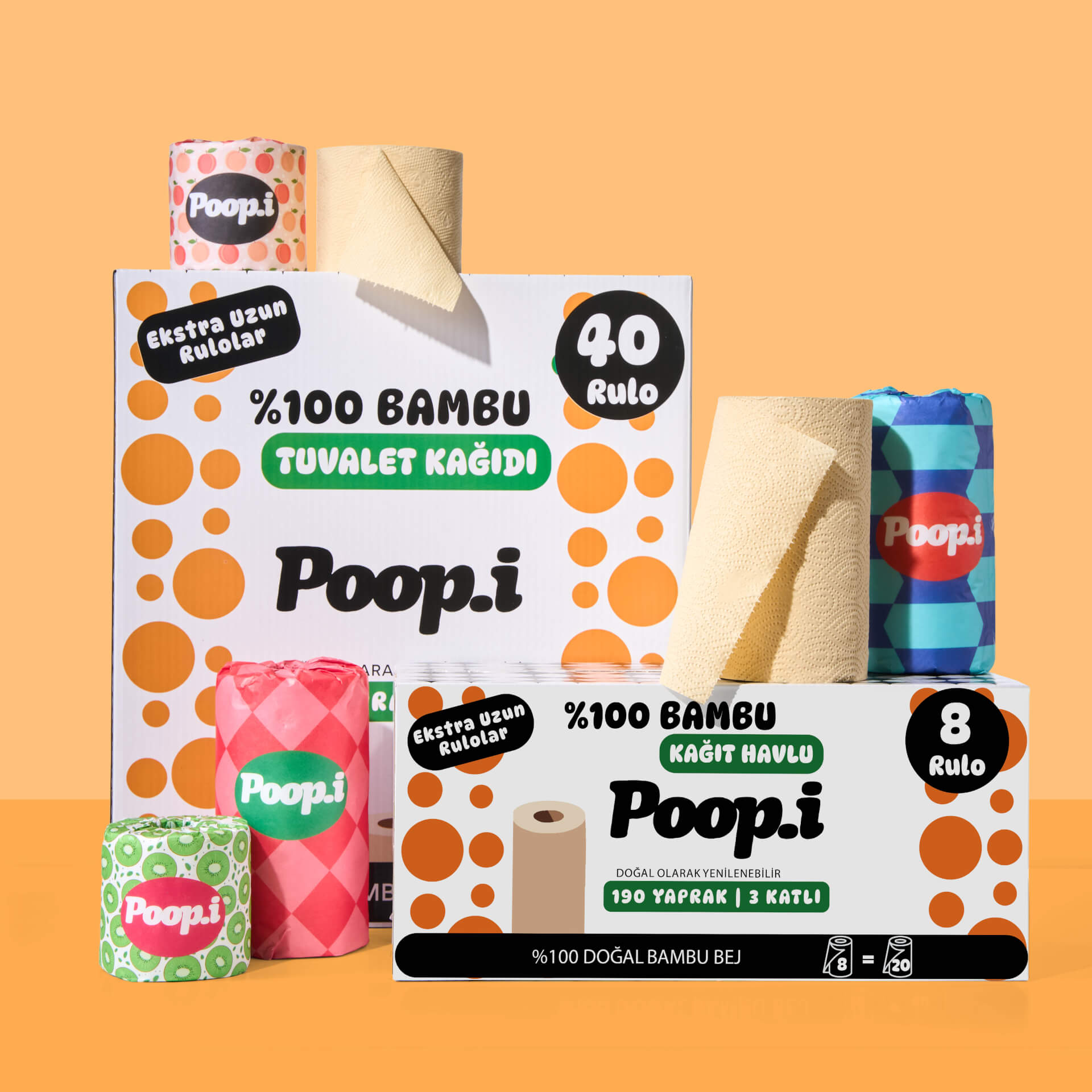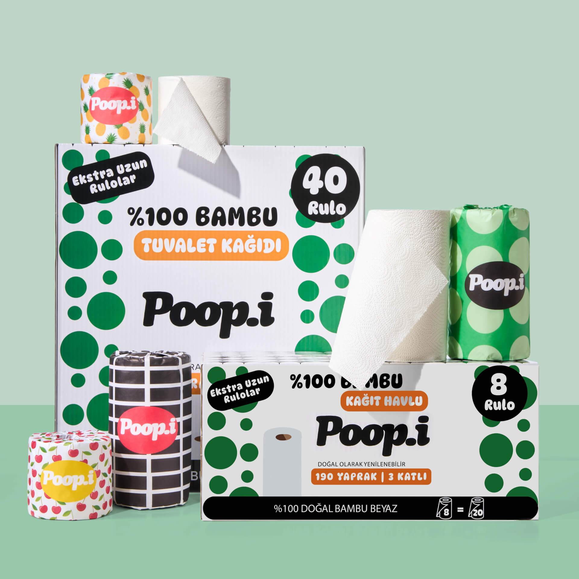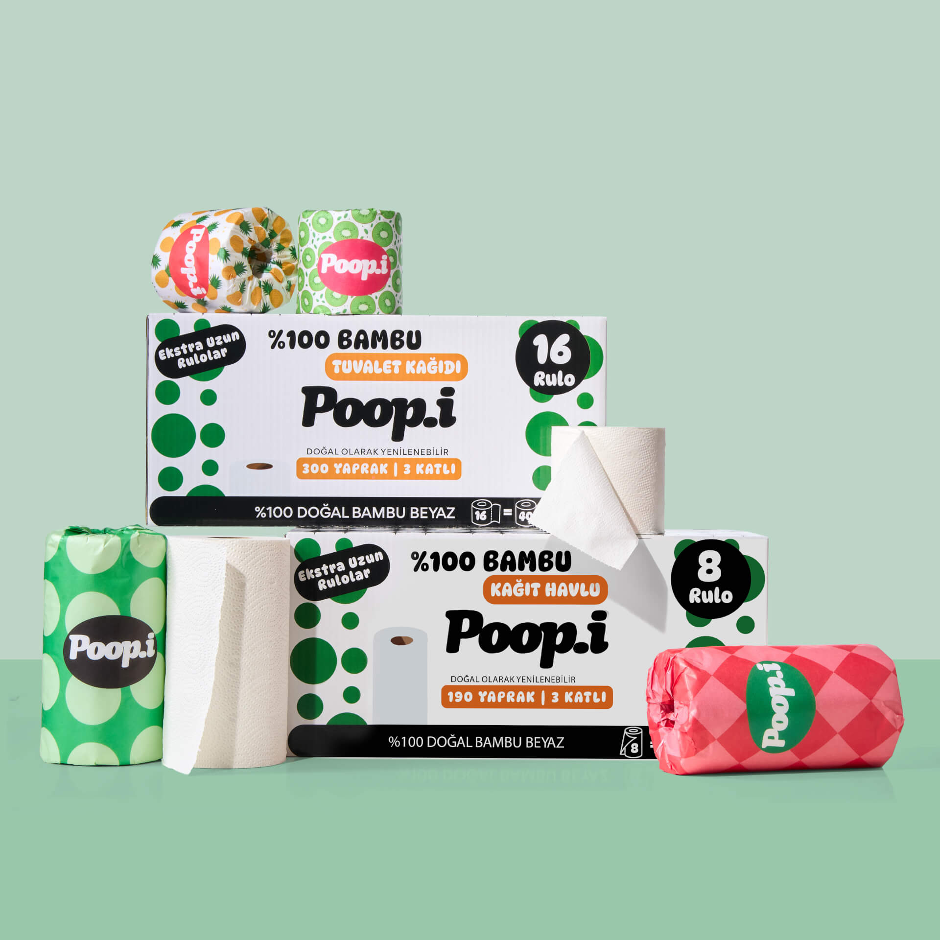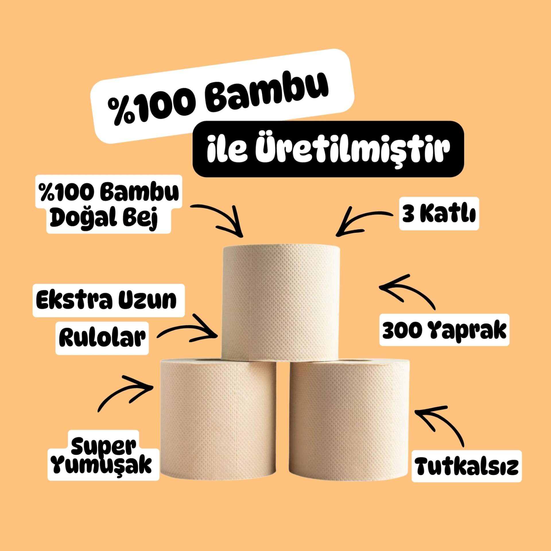 Hızla büyüyen, kendini yenileyebilen bambudan üretilen tuvalet kâğıtları uzun, dayanıklı ve ipeksi yumuşak. Aynı bambu liflerinden üretilen kağıt havlular ise yüksek emicilik ve güç sunar — tek yaprak çoğu zaman yeter.