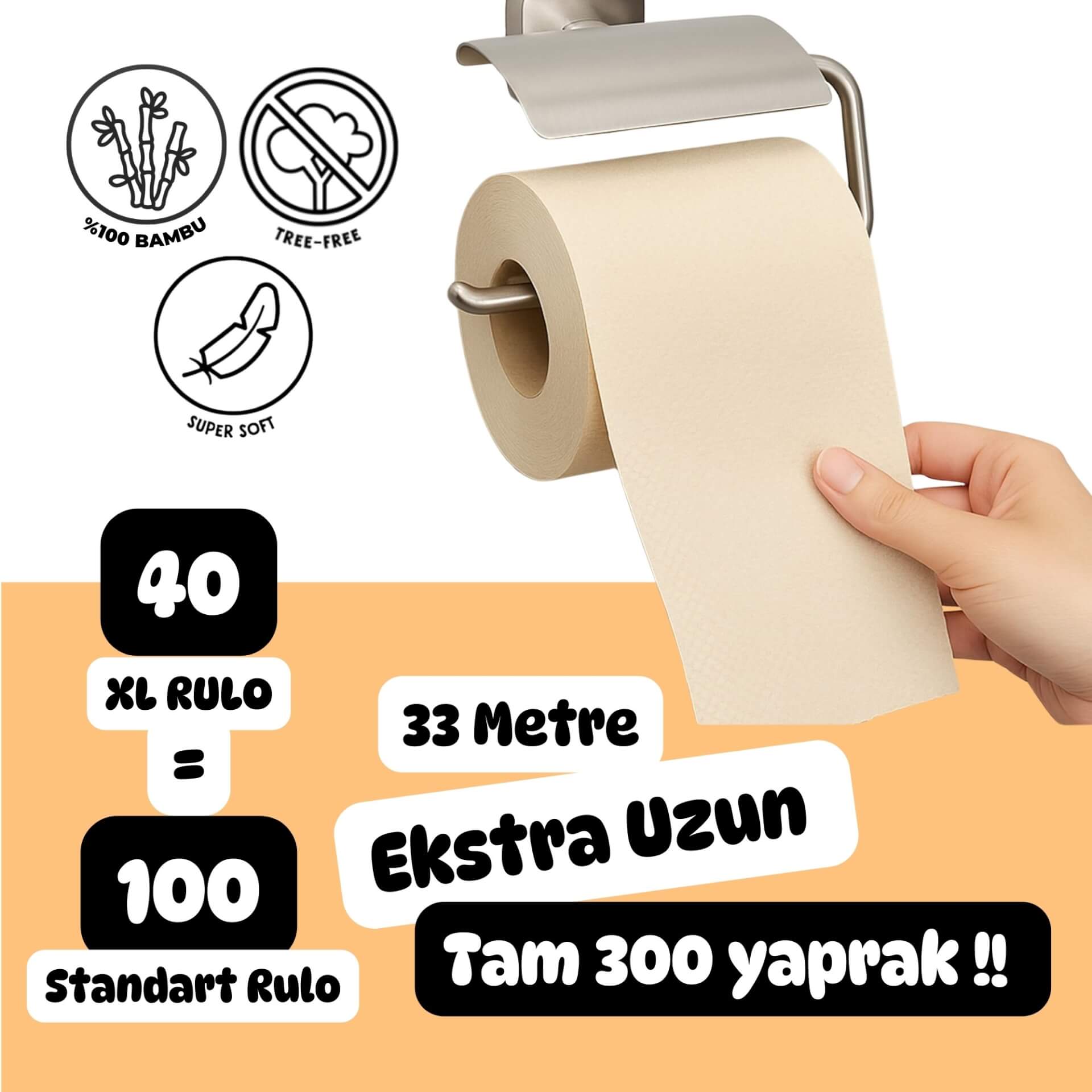 - Rulo başına 300 yaprak – 33 metre
