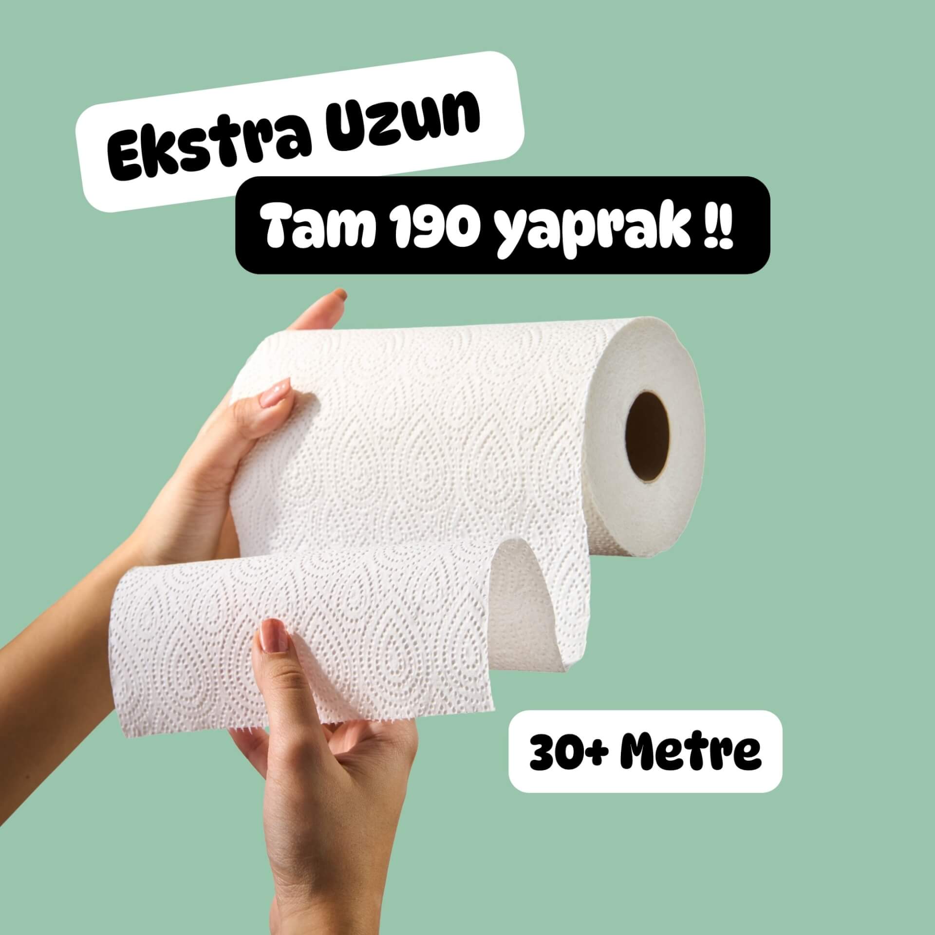 • %100 bambu kağıt havlu - 190 Yaprak 30+ Metre
