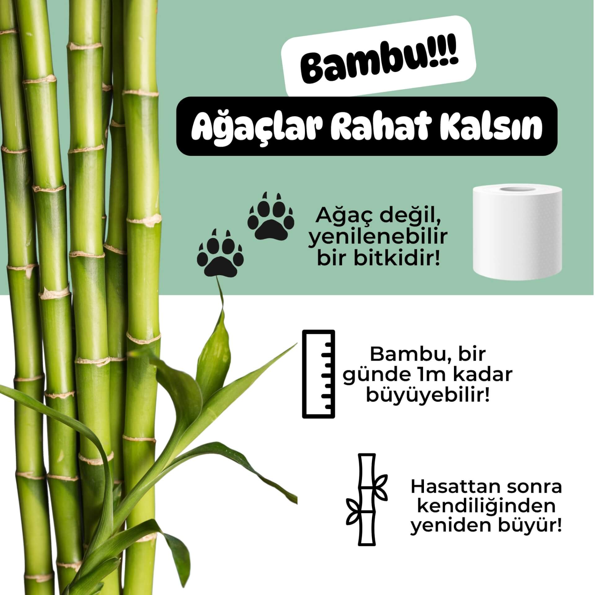 • 3 katlı, ekstra uzun %100 bambu tuvalet kâğıdı